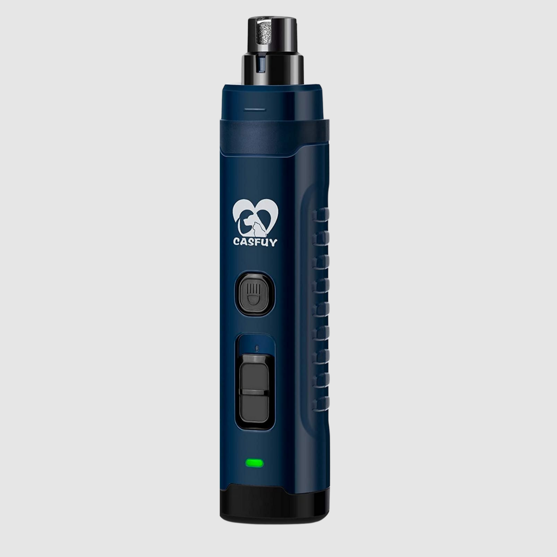 I received my Casfuy grinder earlier today, it's a nice looking sturdy grinder, mine is blue colored... Charger was enclosed, everything was just as I expected and it arrived right on time. I was pleasantly surprised to find out it had a nice charge on it right out of the box so I wasted no time. I put to right to work! This grinder made quick work out of a tough job, my large male Pit Bull has very thick black nails so I have to have a good grinder. Kudos! The bit was very sharp! I always use high speed and the noise level was just fine. I will say that keeping my dogs nails in good shape is a must in our 2 Pit Bull household, both my dogs are quite use to doggie pedicures. I used the grinder on both my dogs today and it took about 30 minutes to do both dogs. (That's awesome!) My male usually takes a little longer because his nails are so thick. I was super pleased and would highly recommend this grinder to all my friends with fur babies.