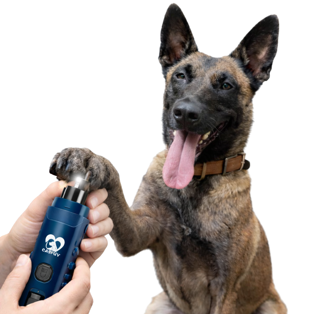 Casfuy Molinillo de uñas para perros con 2 luces LED y motor de 4.8V, diseñado para recortar y alisar las uñas de forma rápida, segura y sin dolor, especialmente en perros medianos y grandes.